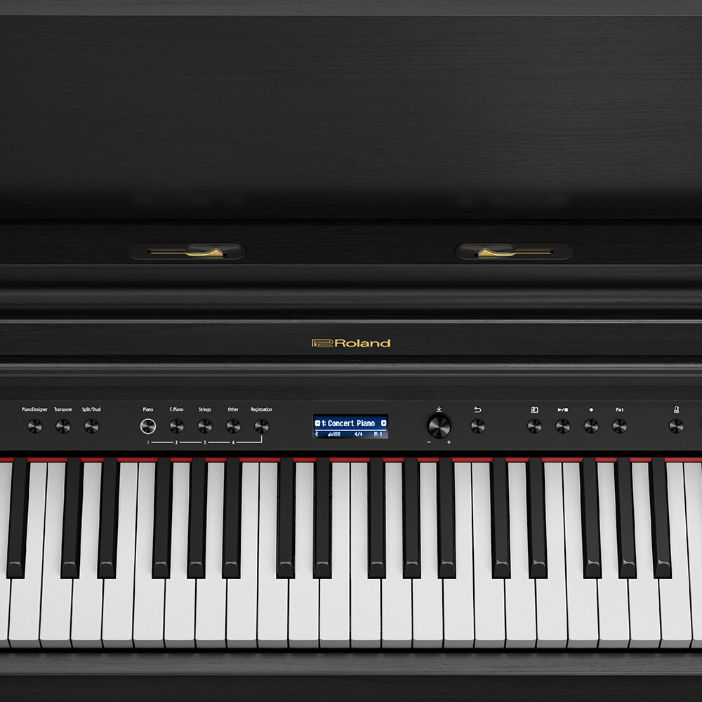 Immerse yourself in a world of sound with the Roland HP-704. This extraordinary piano is a testament to Roland’s dedication to crafting instruments that inspire. From the moment you touch the keys, you'll be transported to a realm of musical expression. The HP-704's powerful sound fills the room with a rich, enveloping tone that brings your performance to life. Its elegant design, available in a variety of finishes, complements any interior, making it a stunning centerpiece in any space. For complete information on this new piano model please visit Roland HP704-CH.
